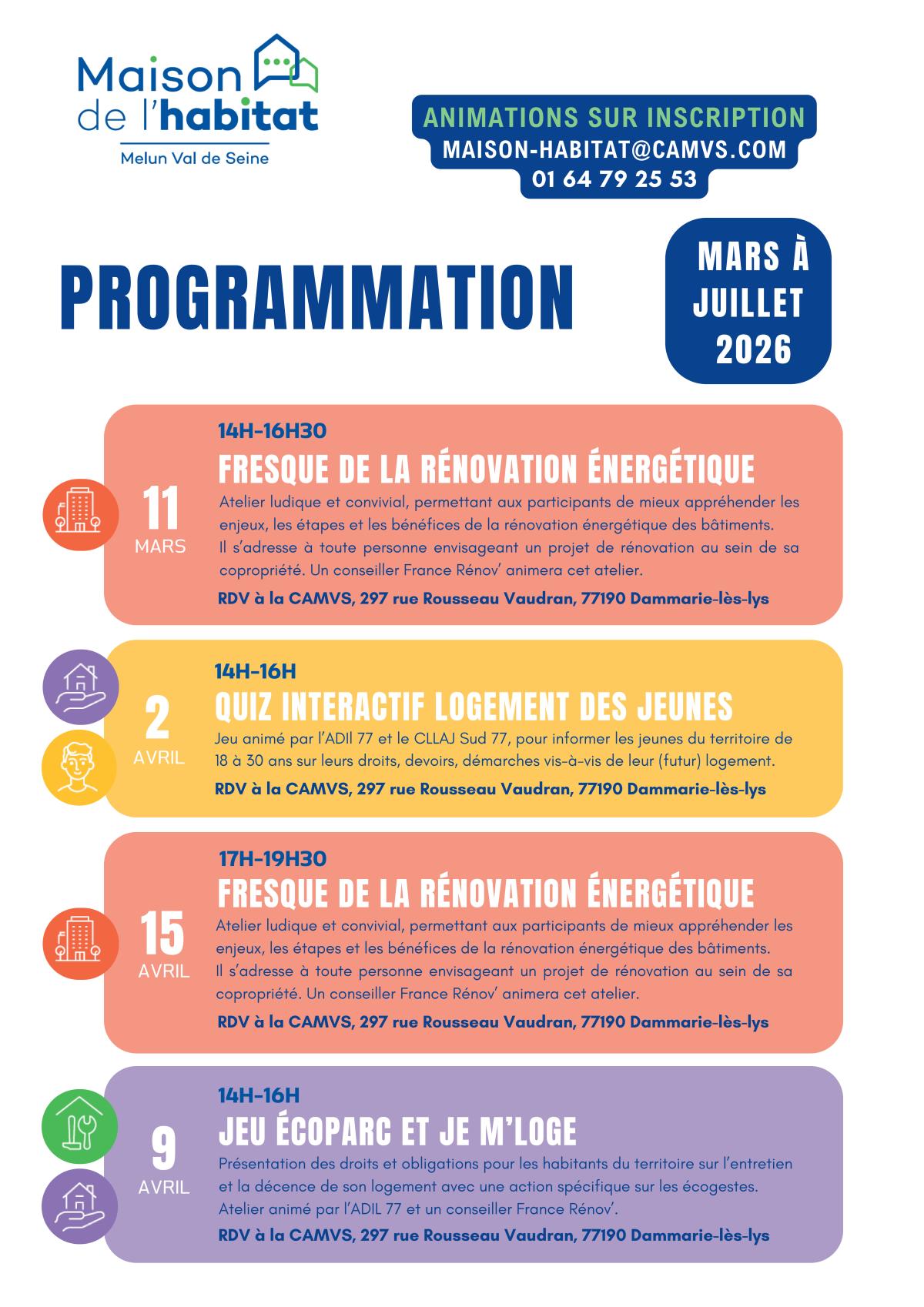 Vie pratique Animations maison de l'habitat Planning des nouvelles animations Date de publication de la page et auteur de publication Créé le : 21/02/2026 Précédent Retour à la liste Suivant