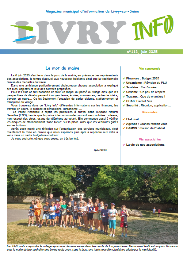 Journal Livry info juin 2025 1 document Publié le 21 octobre 2025 livryinfojuin2025bd.pdf PDF-11.16 Mo Télécharger Précédent Retour à la liste Suivant