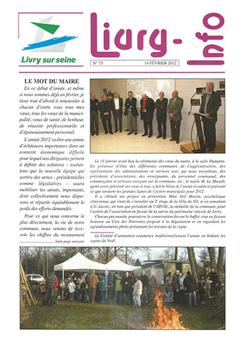 Journal Livry info n°73 du 14 février 2012 1 document Publié le 14 février 2012 Livry info n°73 du 14 février 2012 PDF-7.89 Mo Télécharger Précédent Retour à la liste Suivant